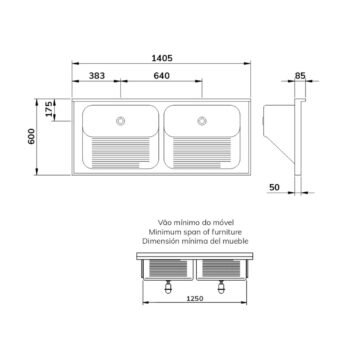 CT50 TD | Tampo Lavanderia com Área Rebaixada e Tanque Duplo – Escovado